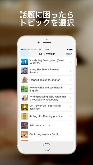 外国人の方とのコミュニケーションで有効なトピックを参照することができるので、英語を使って話すことがほとんどなかった方であっても問題なく勉強を始めることができます。