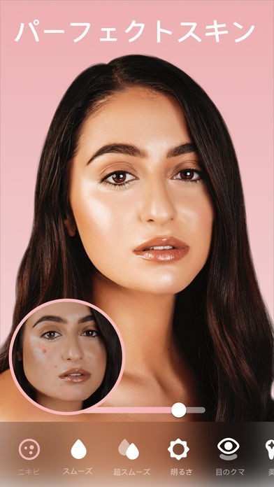 照明効果の変更に対応しているので、肌のトーンや明度も自由に調整していけます。目のクマや顔のニキビを除去出来るため、証明写真やSNS用のプロフ画像を作成したい時にも活躍しますね。