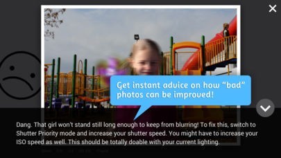 • Get instant feedback about your “photo:” see what you did right, or get advice on how your settings can be improved