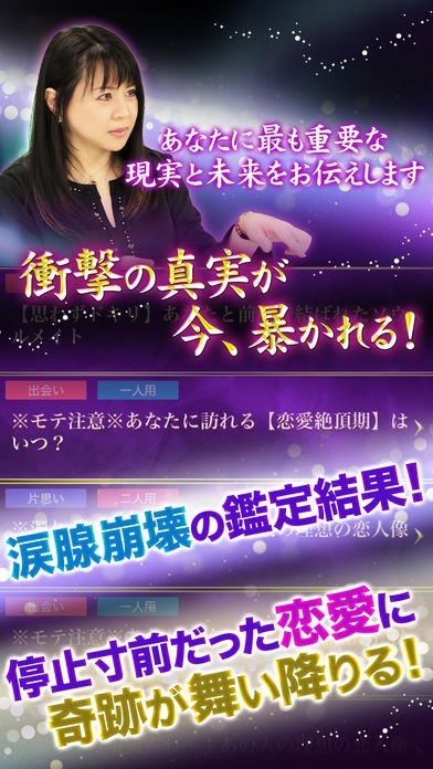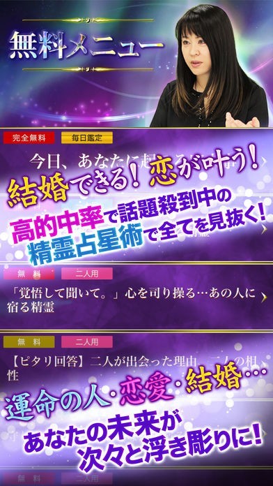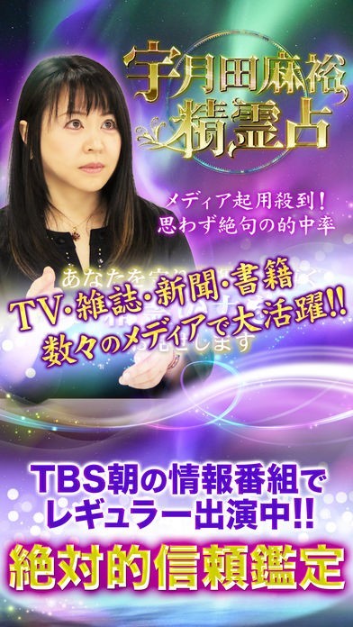 TBSのぐでたま占いや、はやどき!で有名な宇月田麻裕先生に占ってもらえるアプリです。今日あなたに起こる出来事などをズバリと占います。その的中率の高さで大人気の先生に手軽に占ってもらえます。