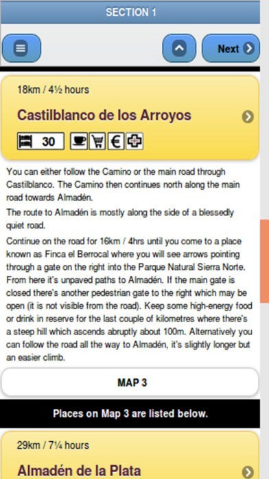 App Storeより引用A guide for pilgrims on the Vía de la Plata from Seville to Santiago, including the branch to Astorga and the Camino to Finisterre and Muxía.