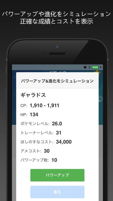 個体値を測定することで、強い個体を優先的に残すことができます。レイドボスと対戦するための最強チーム作りにも役立ってくれるでしょう。強化に必要となる「アメ」などの個数も表示してくれます。