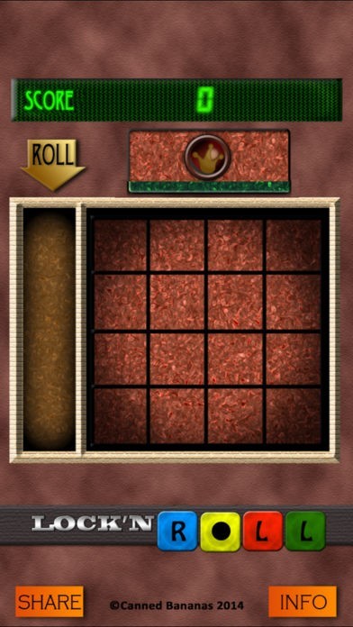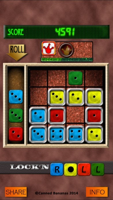 Lock 'n' Roll is an intriguing puzzle game requiring a combination of luck and skill. Roll four dice at a time and arrange them on a 4x4 grid. Receive points for various combinations according to number and color.
