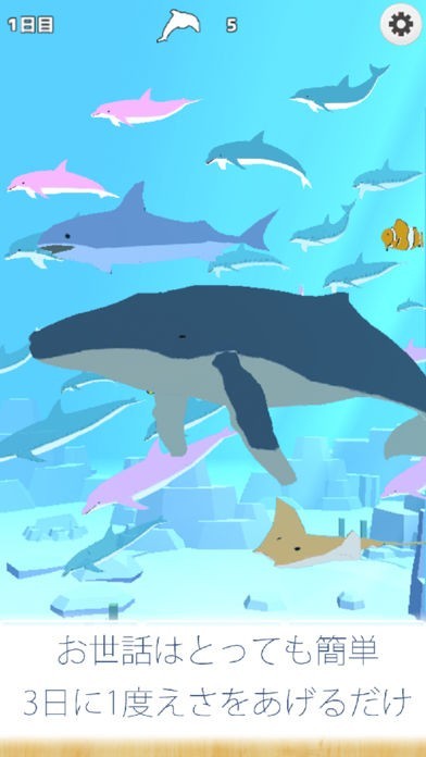 お世話は3日に一度えさをあげてお腹一杯にするだけ!イルカ好きはもちろん、子育てや仕事で忙しい女性に人気の無料育成アプリです!