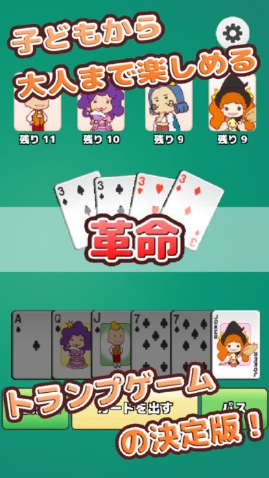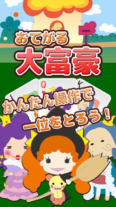 トランプゲームの大富豪がスマホ端末で楽しめるようになっています。複数のキャラクターと一緒にゲームに参加する事が可能で、過去のスコアを表示出来るのも利点でしょう。