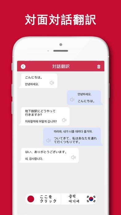 日本語、および韓国語の文章を同時にスマホの画面に表示することができます。相手の人に画面を見せることで、現地の人に話したい事をよりスムーズに伝えることができます。
