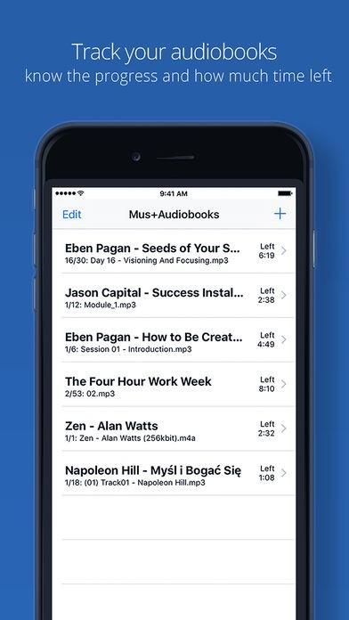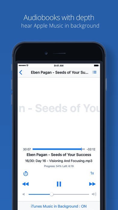 App Storeより引用Mus+Audiobooks lets you listen to your iPod Audiobooks with iPod Music simultanously. You plug your headphones, open the app and click the Play button. Your iPod's favorite music plays simultanously with the audiobook's playlist that you compose from your songs.