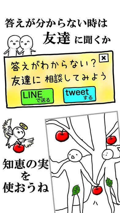 独特な世界観から繰り出されるクイズゲームを楽しみたい方におすすめ。制作者が描いた絵を判別し何をモチーフにしているのかを当てていくゲームです。アップデートでヒント機能が付けられたため、全く分からなくてもヒントをもとにして推理可能です。ボリュームも100問用意されており、シュールな世界観ながらしっかりとアプリを楽しむことができます。どうしても答えがわからなければスマホから友達に聞ける機能もあるため、そこから答えが閃くかもしれません。