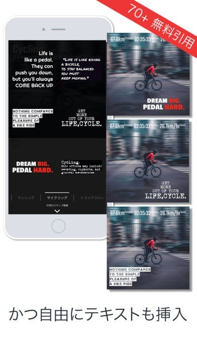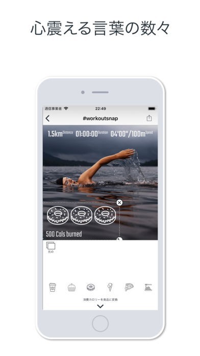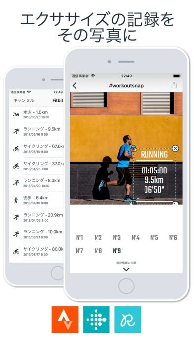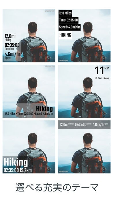 ワークアウトや、サイクリング、ランニングやスイミングなど、カテゴリべつにテーマを貼り付けていくことが可能です。SNSのように、オシャレに編集することもできます。