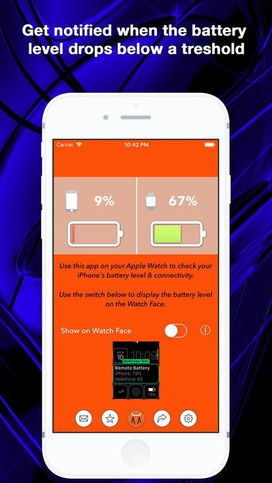 App Storeより引用*****あなたのApple WatchであなたにiPhoneのバッテリーアラートを与える唯一のアプリ!