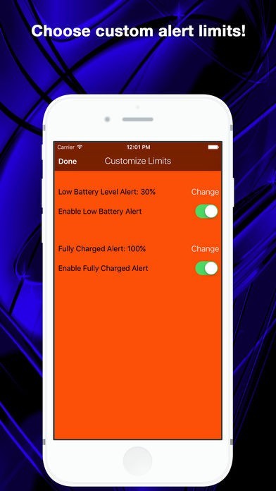 - バッテリレベルのアラート制限をカスタマイズする