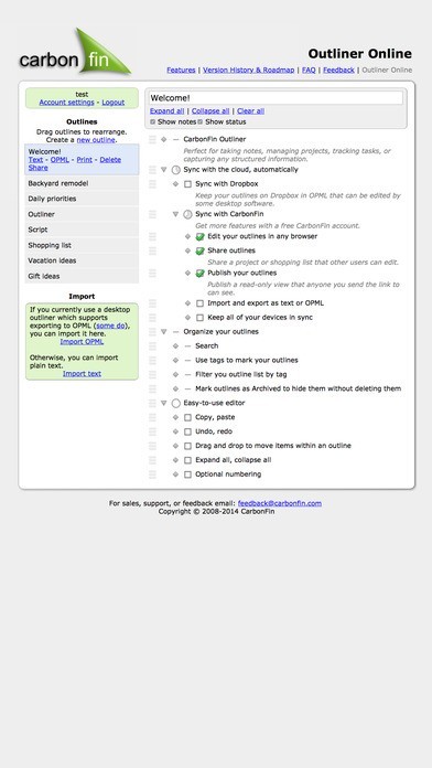 • View and edit your outlines in any web browser
