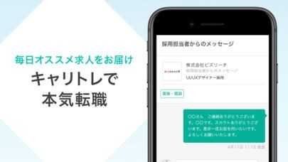 転職を考えているけれど、時間がなくてなかなか求人情報を細かくチェックすることが出来ないという人にぴったりな転職活動応援アプリが「キャリトレ」です。求人情報をざっと見たときに興味があるボタンをタップすることで、自分がどのような求人情報に興味を持っているのかをアプリがどんどん学習して自分好みの求人情報だけをレコメンドしてくれるようになっているので、自分のキャリア志向に合った情報のみをチェックすることが出来るようになります。また興味があるボタンをタップした場合に、自分のデータが相手の企業に届くようになっていて直接スカウトが届く可能性があります。