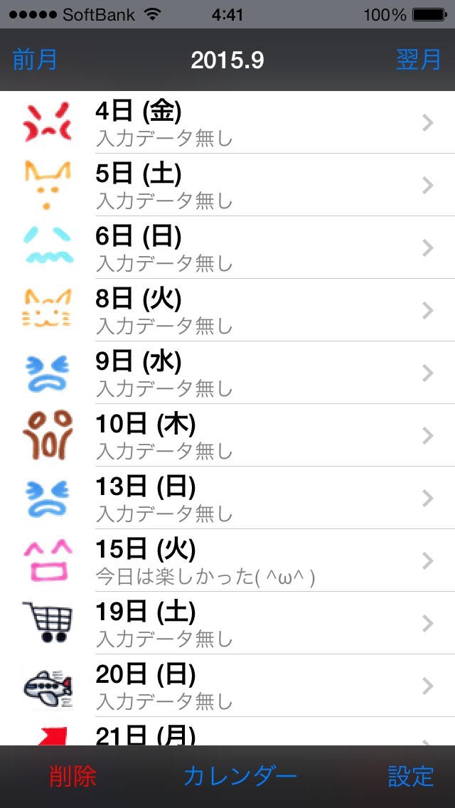 記録した夢の記録はカレンダーにすべてアイコン表示されるようになっているので見た夢を後から見返す時に簡単に見れるようになっているので後でどういう夢だったか確認する時におすすめです。