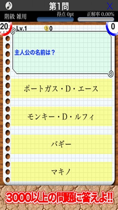 ワンピースに登場する細かいサブキャラクターまでクイズ出題形式で多彩に登場、クイズを解いてキャラについての知識量をアップ
