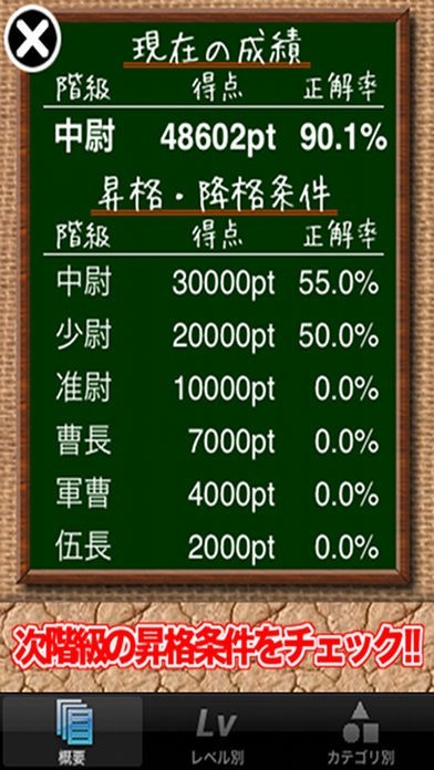 クイズに正解して階級を上げて元帥を目指すことができる!