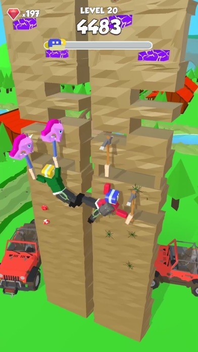 App Storeより引用Get yourself into this new climbing adventure game. Travel around the world and climb the most dangerous cliffs, race against others, complete bonus levels and be the best climber. Also be aware that the pickaxes can go crazy !