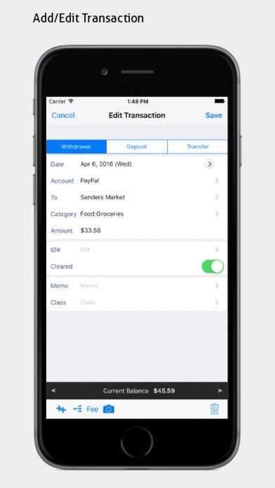- Current, future, cleared balance displays