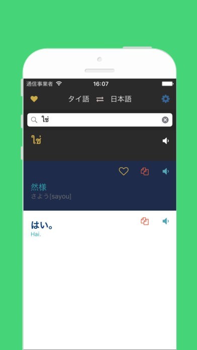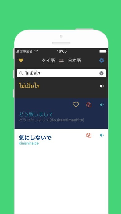 日本語タイ語辞書翻訳のスクリーンショット
