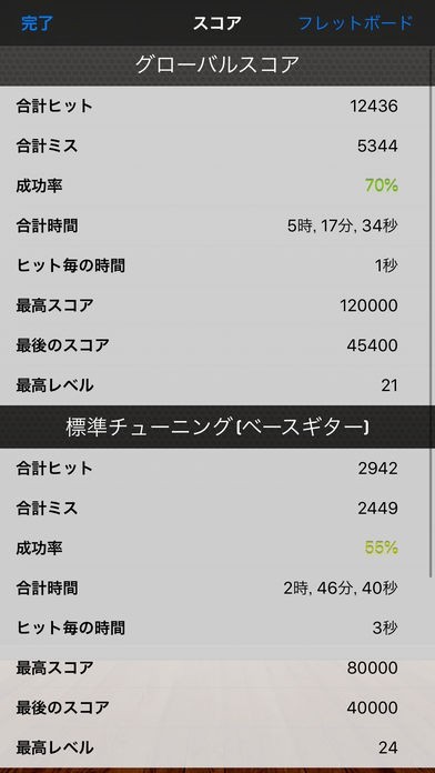 - フレットボード上で自分の上達度を目で確認 - 各フレットでスコアを保存。