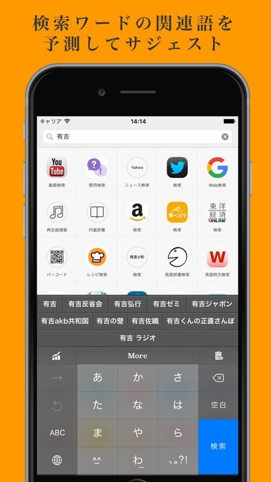 App Storeより引用検索エースは、強力な関連語サジェスト機能をもつ検索ランチャーです