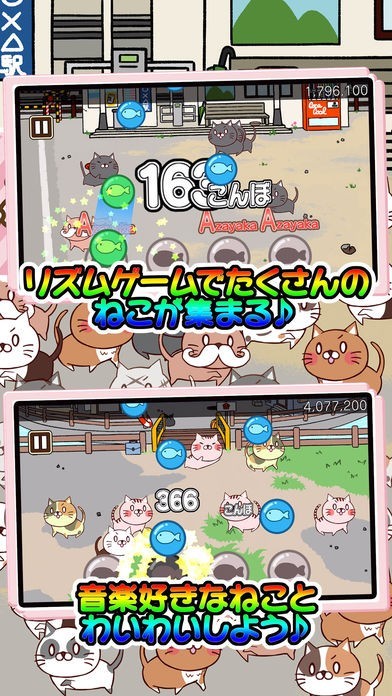 ねこをテーマにしたカワイイリズムゲームとなっています。曲合わせて画面をタップすることでどんどんねこが集まってきます。ノーミスを目指して全てのねこを集めていきましょう。