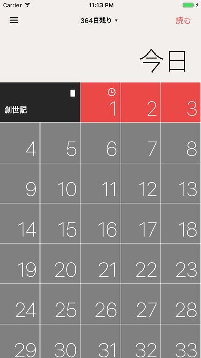 読んだチャプターにチェックをつけられるので、今日はどこから読み始めたらよいかが一目でわかります。読んだ量は、カレンダー表示で確認しながら継続して読み進めましょう。