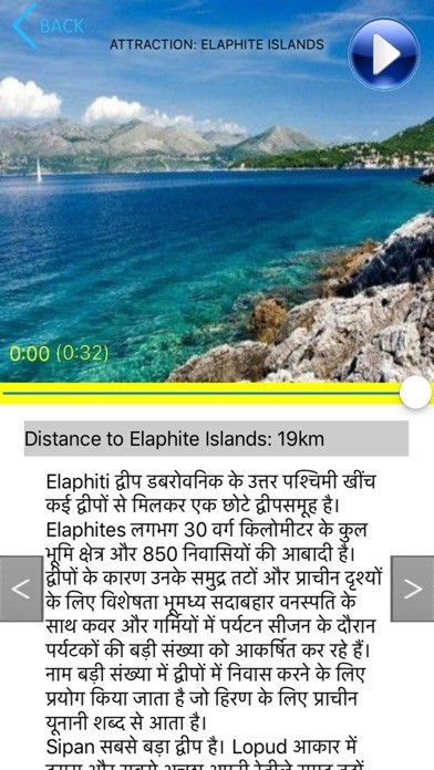 The audio plays all what is relevant to the place and in your selected language.