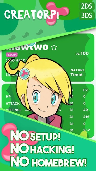 ポケモンウルトラサンとムーンのポケモンやキャラクター編集ができるアプリです。また、編集したデータはコンピュータやSDカードを必要とせず、固いセキュリティに守られたシンプルな移行方法でゲームに移行できます。ぜひ、愛着の湧くオリジナルポケモンを作成してみてください。