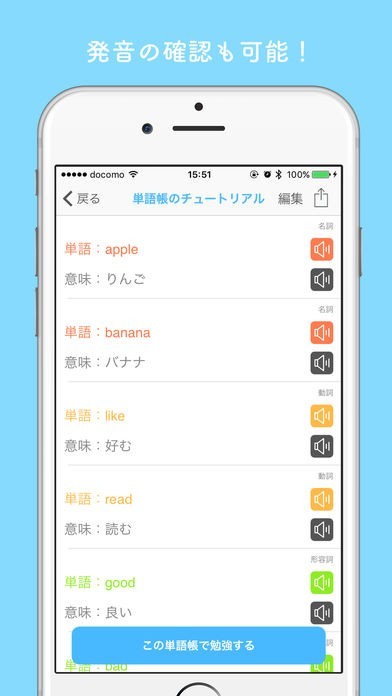 英単語の意味や読み方などを暗記することができるだけでなく、単語の発音機能も搭載されているので、正しい発音を学んでリスニングテストに備えることも可能となっています。