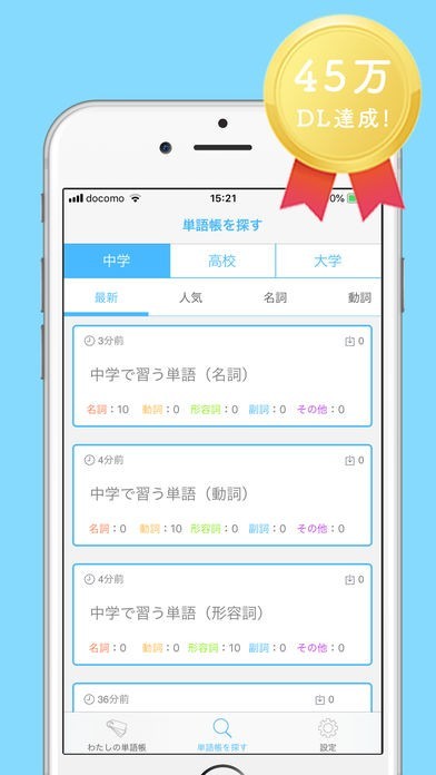 もっと早くこのアプリをダウンロードしておけばよかったです。単語帳を自分で作るのってかなり時間が掛かるんですよね。今では空いた時間を勉強に充てられています。