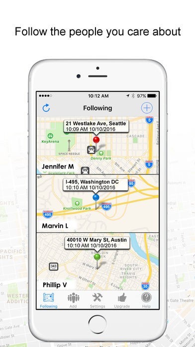 このアプリケーションではGPS衛星テクノロジーを使用することで、他の人をフォローしてその動きをマップ上で確認することができます。