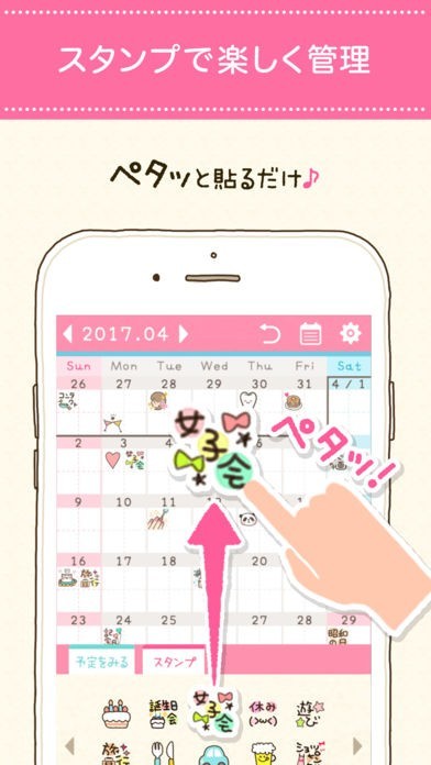 スタンプを貼るだけで簡単にスケジュール管理ができる