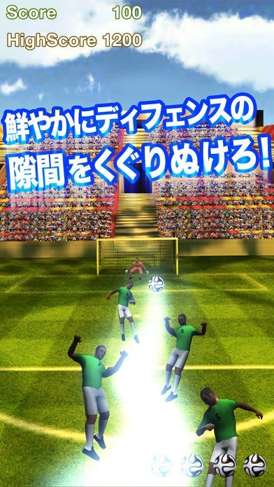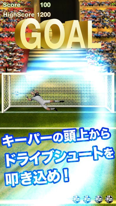 操作は簡単です。プレイヤーはフリック操作でボールにドライブをかけて、ゴールを決めます。ゴールの隅にシュートを決めることができれば高得点をゲット。ハイスコアを目指しましょう。
