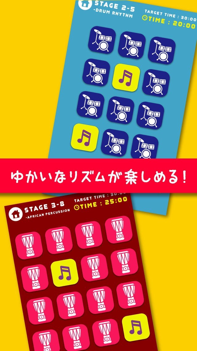 「音感検定 - 音の神経衰弱 -」は、同じ音の種類をあてるゲームになっており、音感を鍛えることができます。音の種類はギターや三味線、ピアノ、ドラムなどがあり、ゲームは100ステージあります。カードをめくる際に鳴る音と同じ音を探し出していく仕組みになっており、ステージがあがるとともに音も難しくなってきます。ミッションをクリアすると、アフリカンパーカッションの楽器を15種類プレゼントしてくれます。ゲームには練習モードもありますので、クリアが難しいステージでは練習を重ねてから挑戦することも可能です。ちょっとした空き時間で音感を鍛えたい方には便利です。