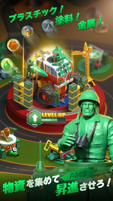 本作ではチュートリアルを兼ねたクエストをクリアすることで、資源やアイテムを貰うことができます。おもちゃの兵隊の強化などの軍事発展や、研究室や工場の建設といった司令部建設など、内容によってカテゴリー分けされ、次の目標を見つけやすくなっています。