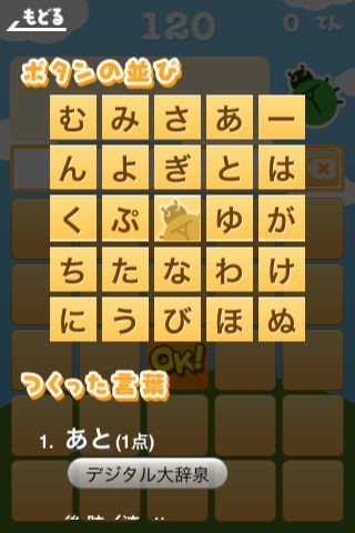制限時間内にひらがなで単語を数多く作るゲームアプリ!