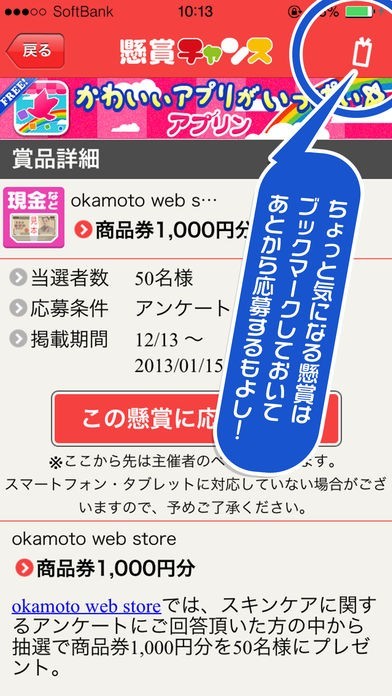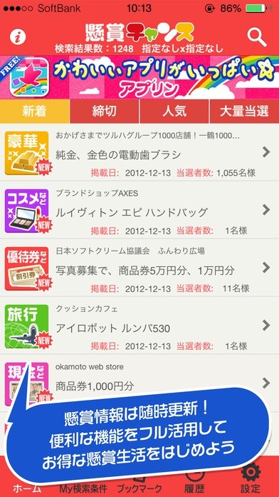 日本最大級の懸賞サイトのアプリなので応募可能な案件がたくさん!!
