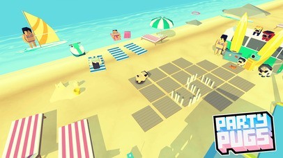 『Party Pugs』は軽快でありながら、手強いターン制のゲームです。プレイヤーはイタズラ好きでかわいいパグを操作して、Party Pugのバスに到達するため、砂浜を越えなければなりません。ただし、警察には気をつけて。捕まってしまうとゲームオーバーになってしまいます!