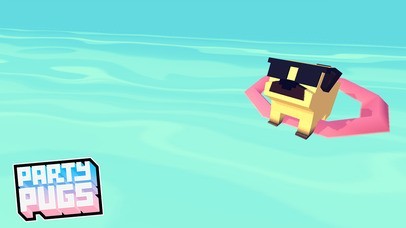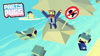 App Storeより引用"史上最高にかわいいパーティーアニマルと遊ぶ準備ができてる?それならさっそく砂浜に向かいましょう!『Party Pugs』の登場です!
