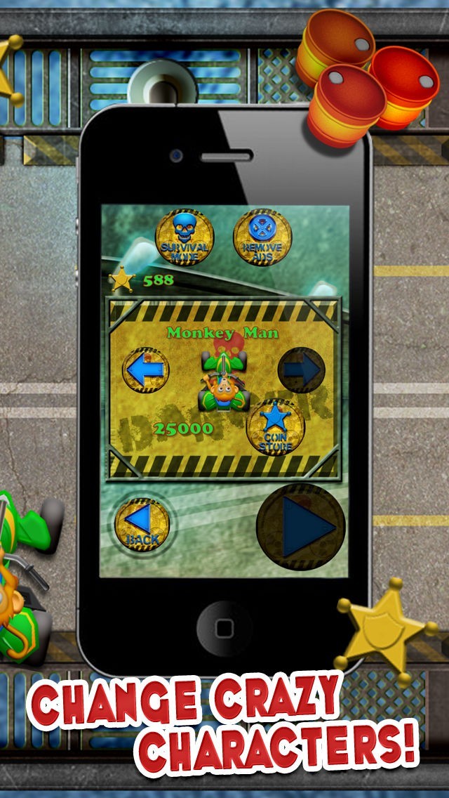 コインと散弾銃のパワーアップを収集します。これは、4輪車でニトロストリートバイクと面白いジャングルの猿のようなクールな新しい自転車のロックを解除するのに役立ちます。