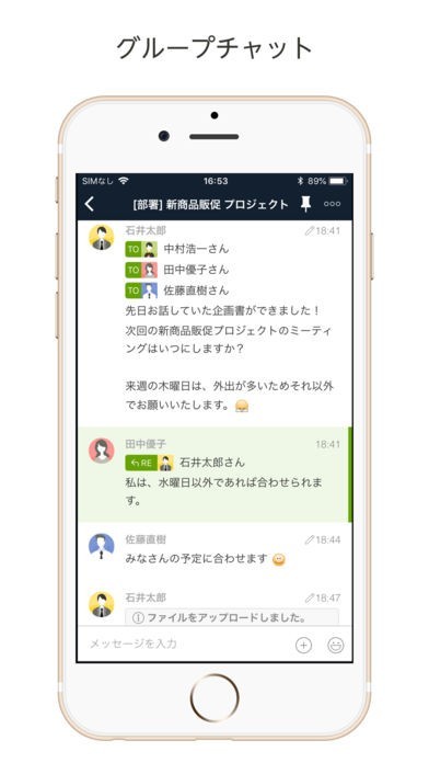 複数のプロジェクトメンバーとも手軽にチャットでコミュニケーション。作業のスピードアップに役立つ!