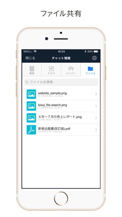 「チャットワーク」は、10万社以上が導入するビジネスチャットツールです。 業務の効率化に活躍してくれるツールとしてKDDI株式会社などの大手企業が導入しており、多彩な業種に活用されているのが特徴です。 チャット機能では複数のメンバーと同時にコミュニケーションが可能。 テキストチャットで素早く会話ができるため、作業のスピードアップに役立てることもできるでしょう。 ファイル共有を利用すれば写真やデータの共有が手軽に行えるのも便利なポイント。 さらにタスク管理機能が付属しており、完了チェックもタップするだけと簡単に操作が行えます。