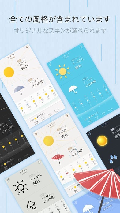 10日間の長い予報は、出張、旅行の時などにも助けになって、その時の荷物を減らしてくれます。行った先ですぐ天気予報がもわかるのは、行動範囲を広げてくれます。どこででもある不意に起こる災害の不安な要素を、解消してくれる手助けをしてくれます。いつも表示されるオリジナルなスキンの種類が豊富なので気分によって変えてみるのも楽しいです。