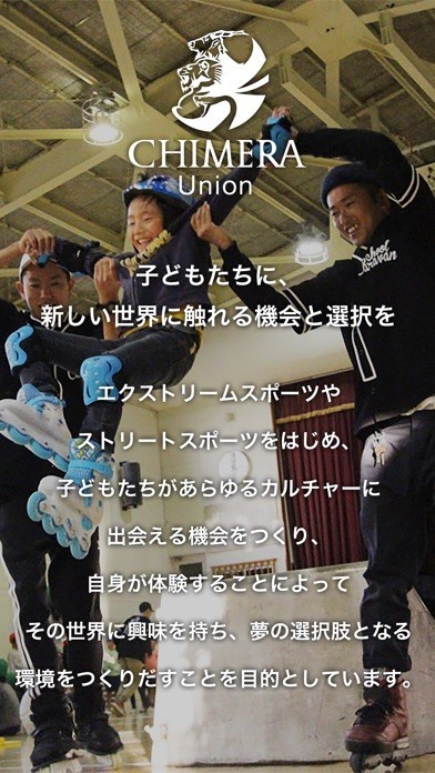CHIMERA Unionは、エクストリームスポーツや、ストリートスポーツをはじめ、カルチャーに出会える機会をつくり、自身が体験することによってその世界に興味を持ち、夢の選択肢となる環境をつくりだすことを目的としています。
