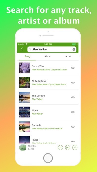 キーワード検索を使って曲名やアーティスト名、アルバム名から好きな音楽を簡単に見つけることができます。アプリ内の音楽は無制限に再生できるので、好きなときに好きなだけ音楽を堪能できます。