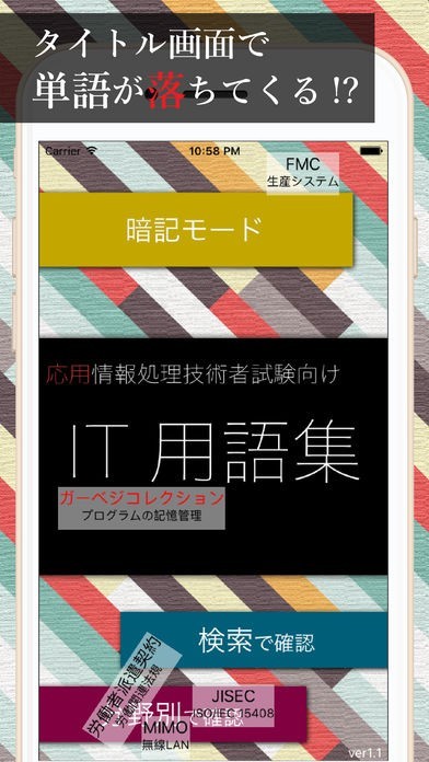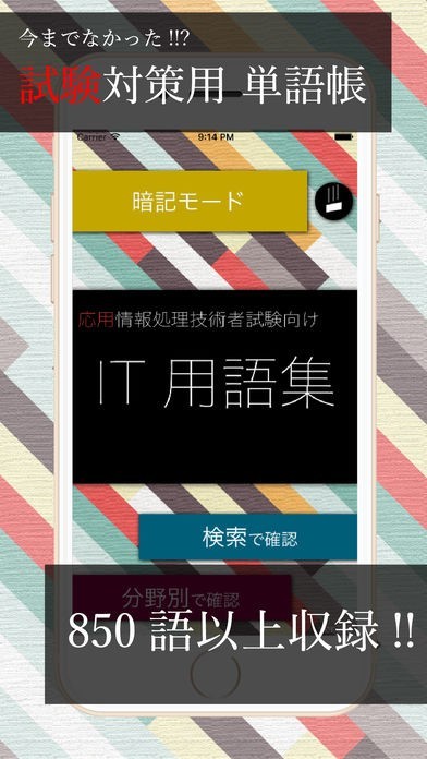 アプリには850以上のIT用語集が収録されています。どれも応用情報技術者試験で知っておかなければならない単語ばかりです。アプリ1つで資格試験の用語を勉強することができます。