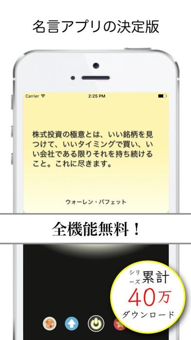 App Storeより引用読むだけで投資スイッチをオンに出来る+世界中の有名人が残した投資力アップのヒント名言を表示します。