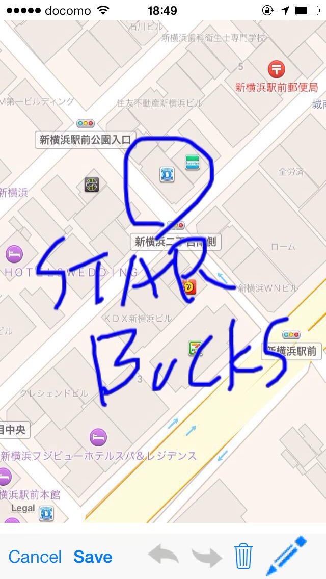 ナビゲーション機能と共に世界地図の上に手描きの絵やメモを書き加えることができるアプリ