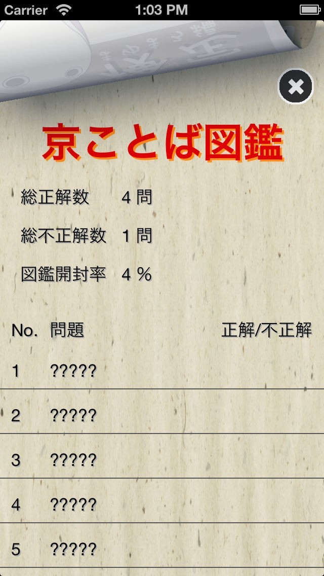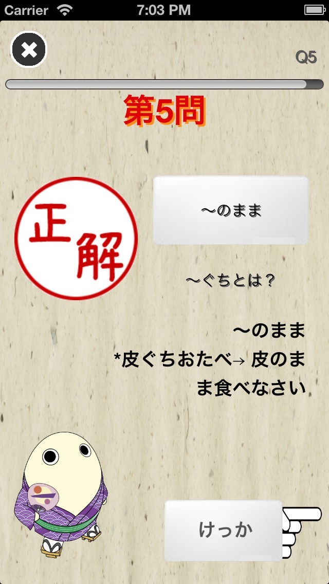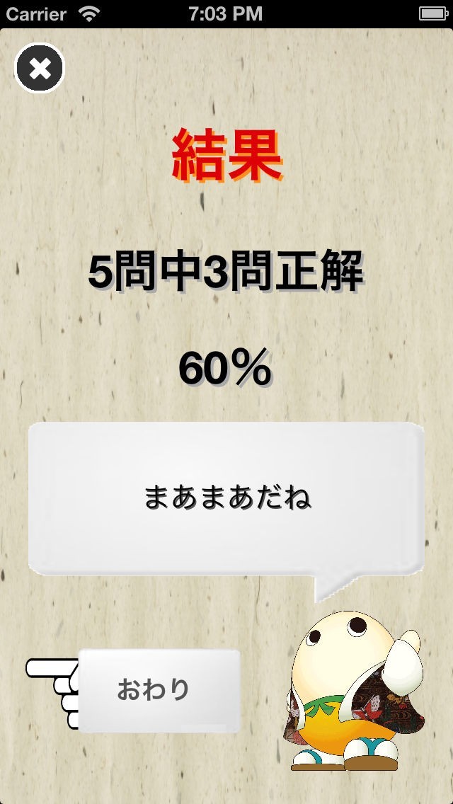 京ことば検定まゆまろ編 for iPhone ~空いた時間に遊べるクイズ・アプリ~のスクリーンショット